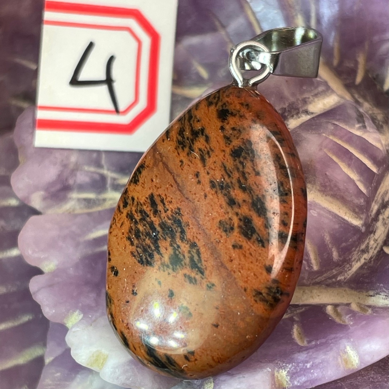 Обсидиан коричневый Кулон капля плоская 25мм