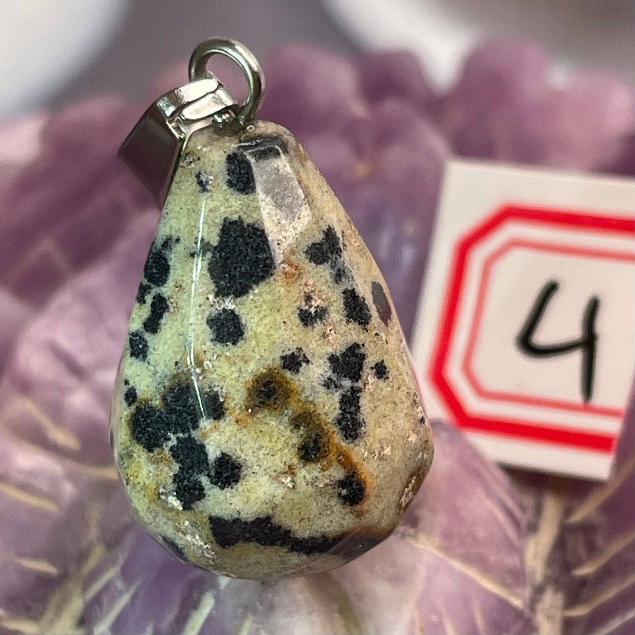 Яшма далматиновая Кулон Капля объемная грань 20мм