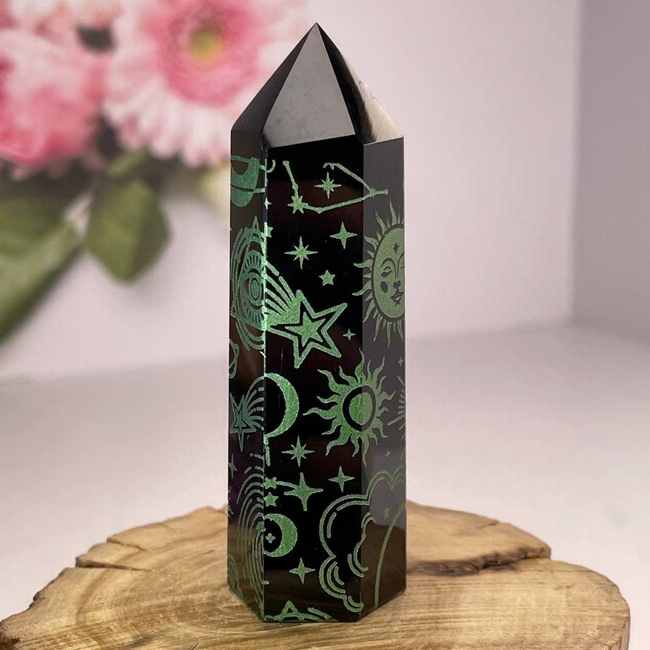 47383 Обсидиан Кристалл с рисунком змеи и созвездия 78мм