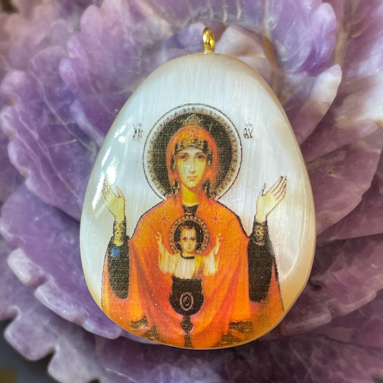 49751 Селенит оберег кулон Неупиваемая чаша 32*45мм