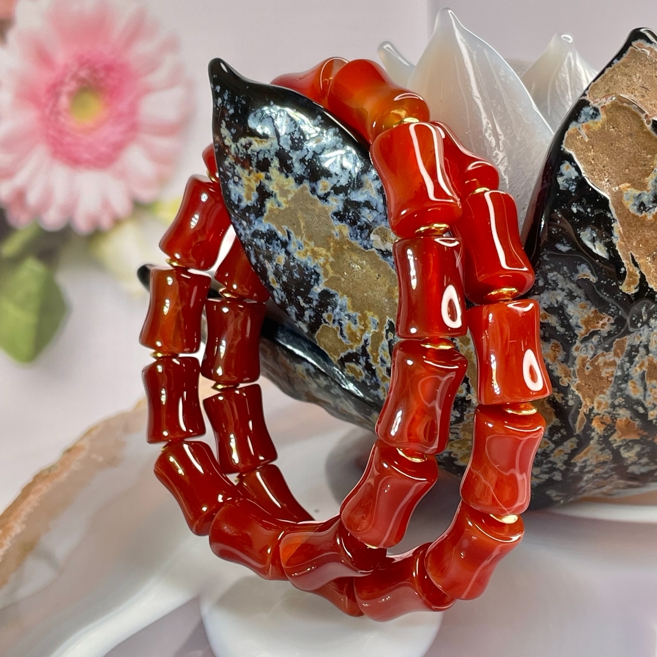 51770  Агат сердоликовый Браслет цилиндр 10*14мм (Заряжен на Удачу)