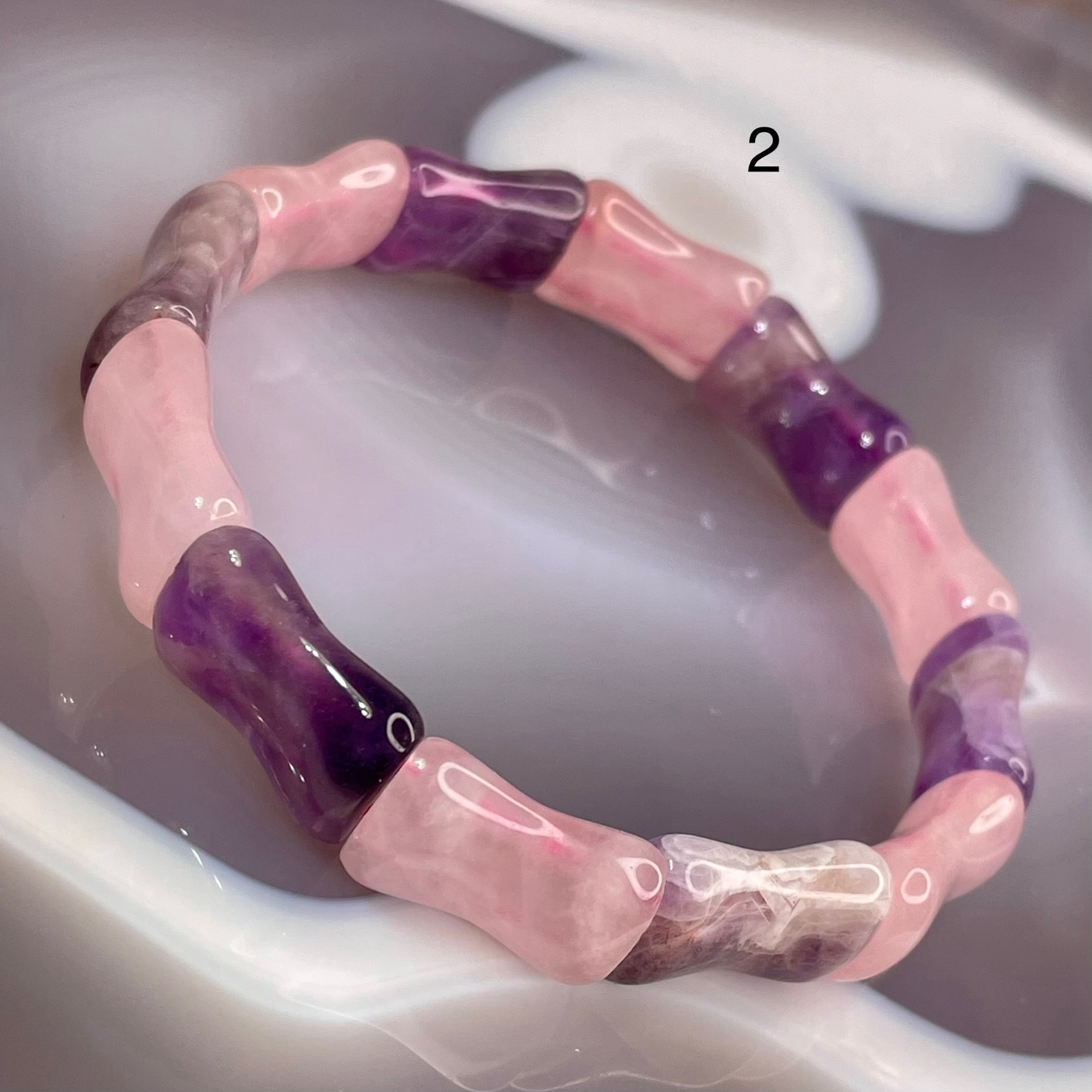 51814  Аметист Розовый кварц Браслет сегмент 12*16мм