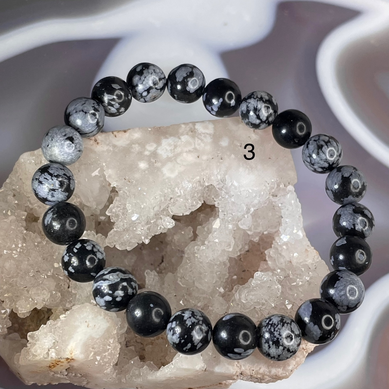 55008 Обсидиан снежный Браслет 8мм